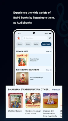 Audio Section - Vachanamrut, Swamini Vato, Bhagwan Shri Swaminarayan’s detailed Jivan Charitra (5 parts), Bhaktachintamani, Aksharbrahma Shri Gunatitanand Swami’s detailed Jivan Charitra (2 parts), Brahmswarup Bhagatji Maharaj’s detailed Jivan Charitra, Brahmaswarup Shastriji Maharaj’s detailed Jivan Charitra, Brahmaswarup Yogiji Maharaj’s brief Jivan Charitra, Brahmaswarup Pramukhswami Maharaj’s detailed Jivan Charitra (part 1 to 3), Eternal Virtues, Mahant Swami Maharaj’s brief Jivan Charitra (English version), Bhagwan Shri Swaminarayan na Bhaktratno and many other audio books.