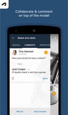 Autodesk Fusion™ for Android lets you collaborate on 3D designs with anyone inside or outside your company. With the Fusion app, you have the flexibility to view and collaborate on your Fusion CAD models—anytime, anywhere. The app supports more than 100 file formats including DWG, SLDPRT, IPT, IAM, CATPART,IGES, STEP, STL, making it easy to share designs with your team, clients, partners, and friends.