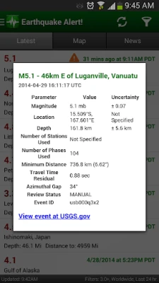 This app sources its earthquake data from USGS.gov but doesn't represent a government entity.