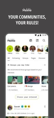 MeWe is one of the world's largest decentralized social media networks. With a privacy focus, it contains no ads, no targeting and no newsfeed manipulation. We are a community focused experience with more than 700,000 interest groups, allowing anyone to find like-minded people that share their same passions – no matter how obscure.