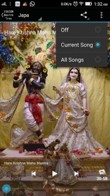 Your mobile becomes a continous chanting box playing transcendental chanting of mahamantra japa by Srila Prabhupada, founder of ISKCON.